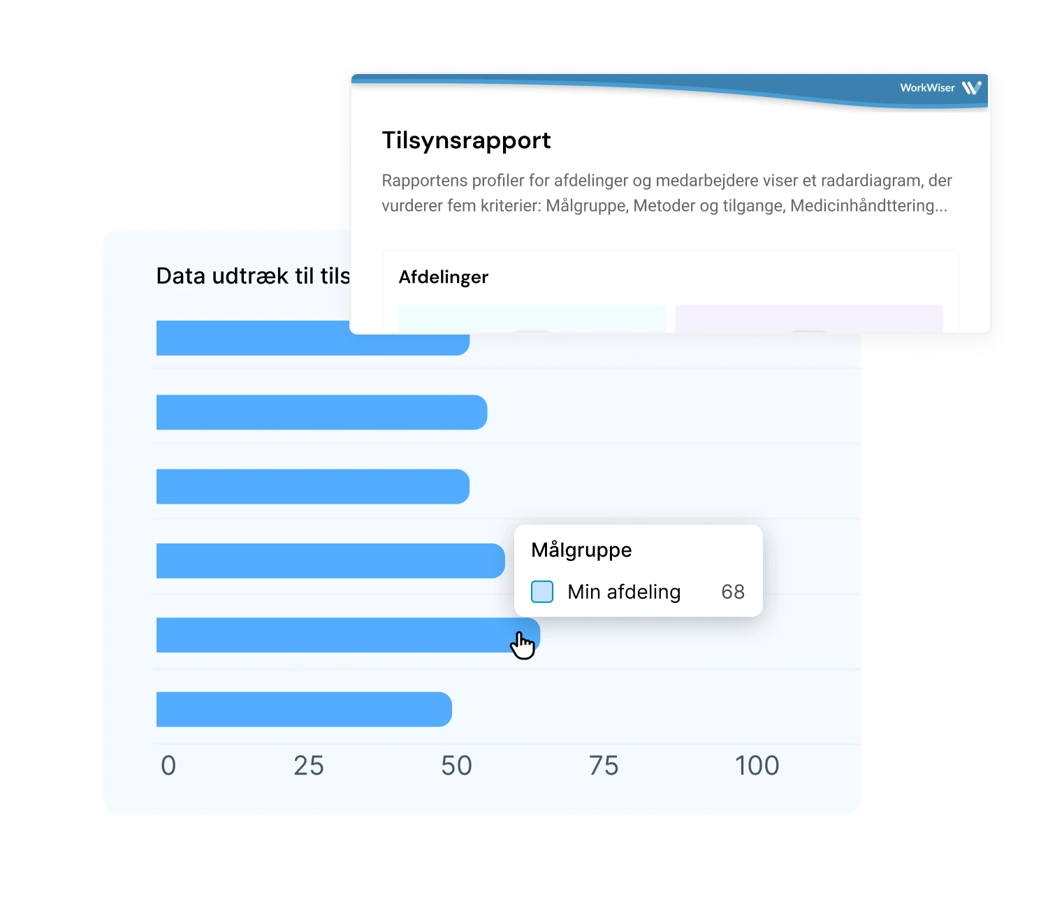 Tilsyn er en central del af både social- og sundhedsområdet, og er med til at sikre, at organisationer lever op til lovmæssige krav. Workwiser er med til at klæde både medarbejdere og ledere på til tilsyn gennem løbende kompetenceudvikling og dokumentation af organisationens faglighed gennem tilsynsrapporten, som genereres ud fra de kurser, der gennemføres blandt medarbejderne.