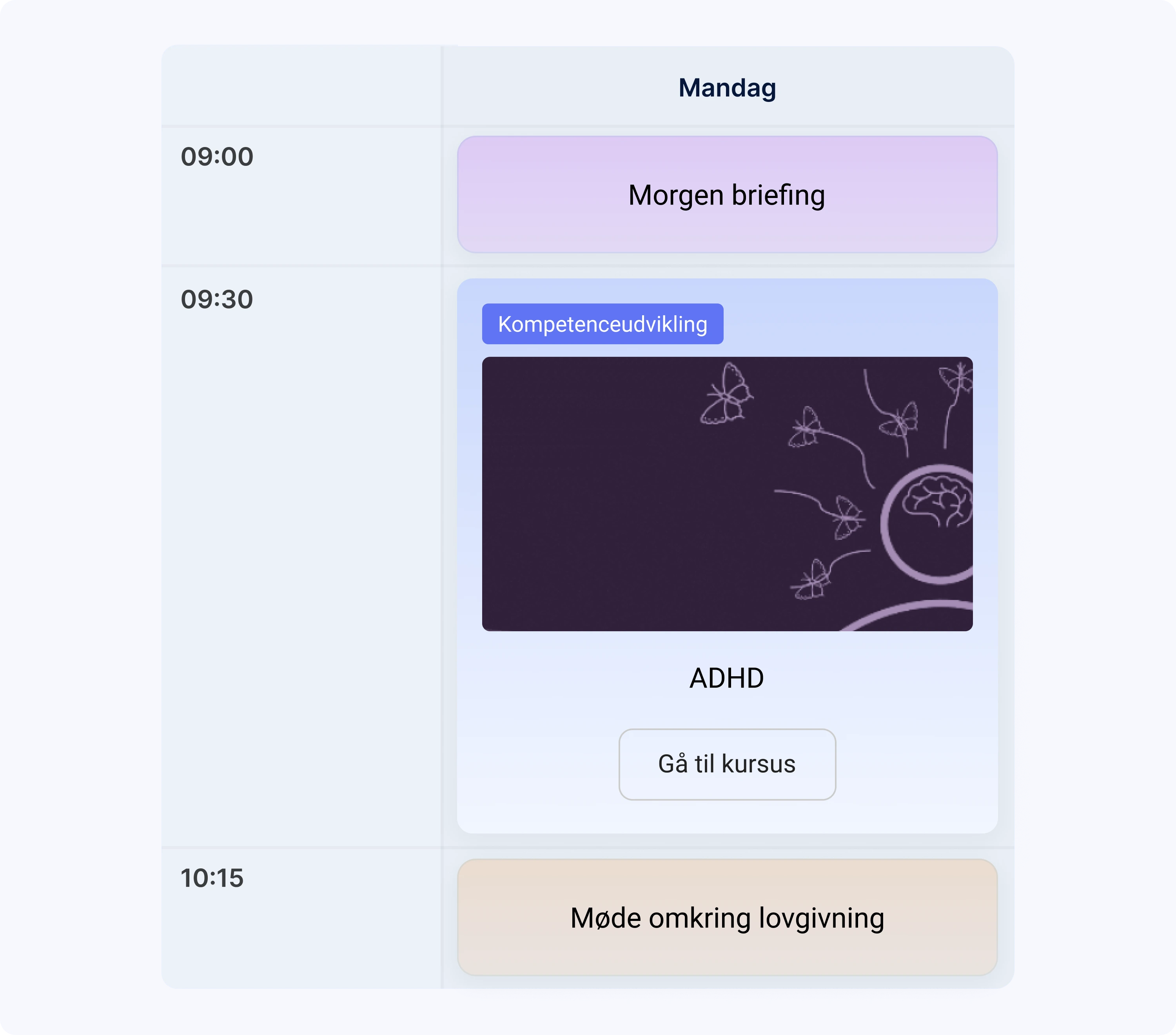 Platformens bibliotek indeholder praksisnære kurser til kompetenceudvikling samt internt uploadet materiale, så alt samles ét sted. Biblioteket rummer mere end 60+ kurser, som dækker hele spektret af faglige områder - fra metoder som LA2, MI og mentalisering, til lovgivning om magtanvendelse, målgruppe-kendskab inden for bl.a. ADHD, udviklingshæmning samt nyeste viden om medicinhåndtering.