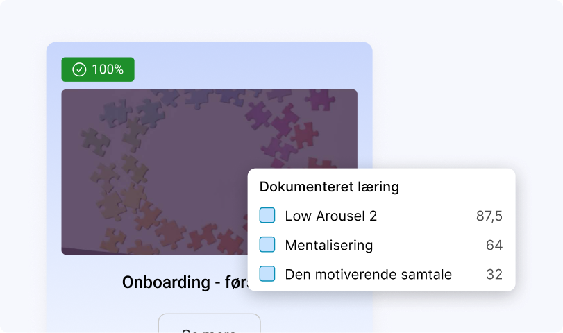 Vores platform giver jeres organisation de rette værktøjer til at sikre faglig kvalitet i mødet med borgeren gennem et bibliotek af kurser med animationsvideoer, interaktive grafikker, quizzer og praksisnære dilemmaer.