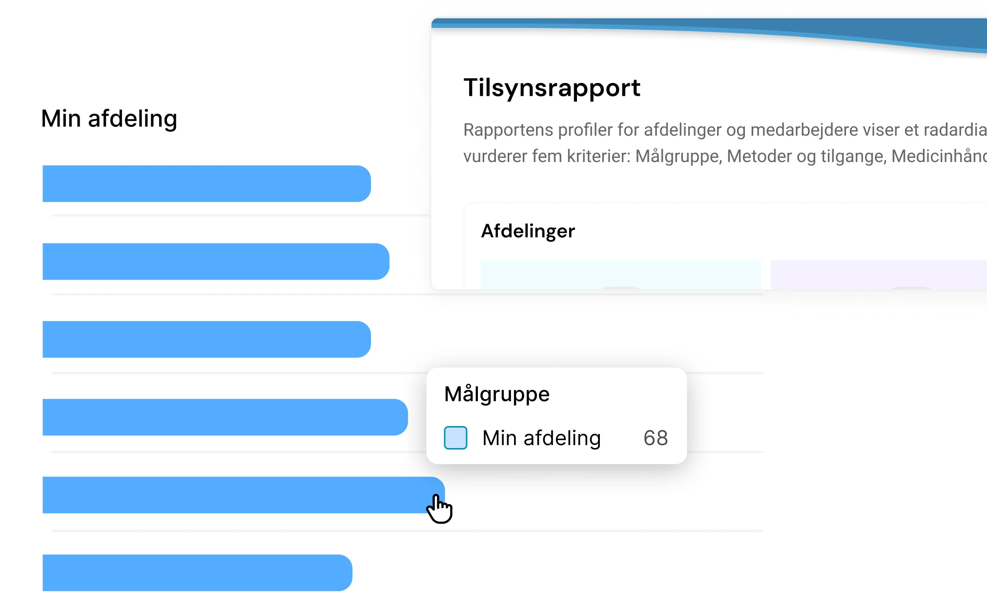 Tilsynsrapporten er med til at klæde både medarbejdere og ledere på til tilsyn gennem løbende dokumentation af afdelingens faglighed, som genereres ud fra de kurser, der gennemføres i huset. Værktøjet er lavet for at automatisere store dele af det forberedende arbejde, som ledelsen laver forud for et tilsynsbesøg, så de i stedet kan fokusere tiden på kerneopgaverne i huset.