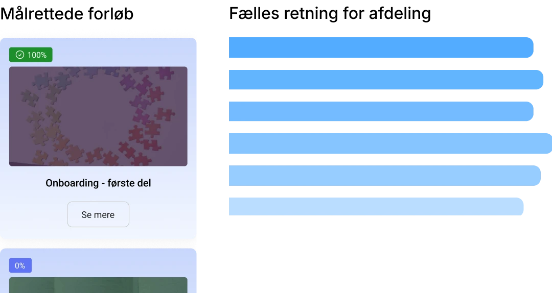 Workwiser styrker faglig ledelse ved at give ledere overblik over medarbejdernes kompetencer, gennemførte kurser og læringsforløb. Platformen gør det nemt at identificere styrker og udviklingsområder, planlægge målrettet kompetenceudvikling og sikre, at hele organisationen arbejder ud fra et fælles fagligt grundlag.